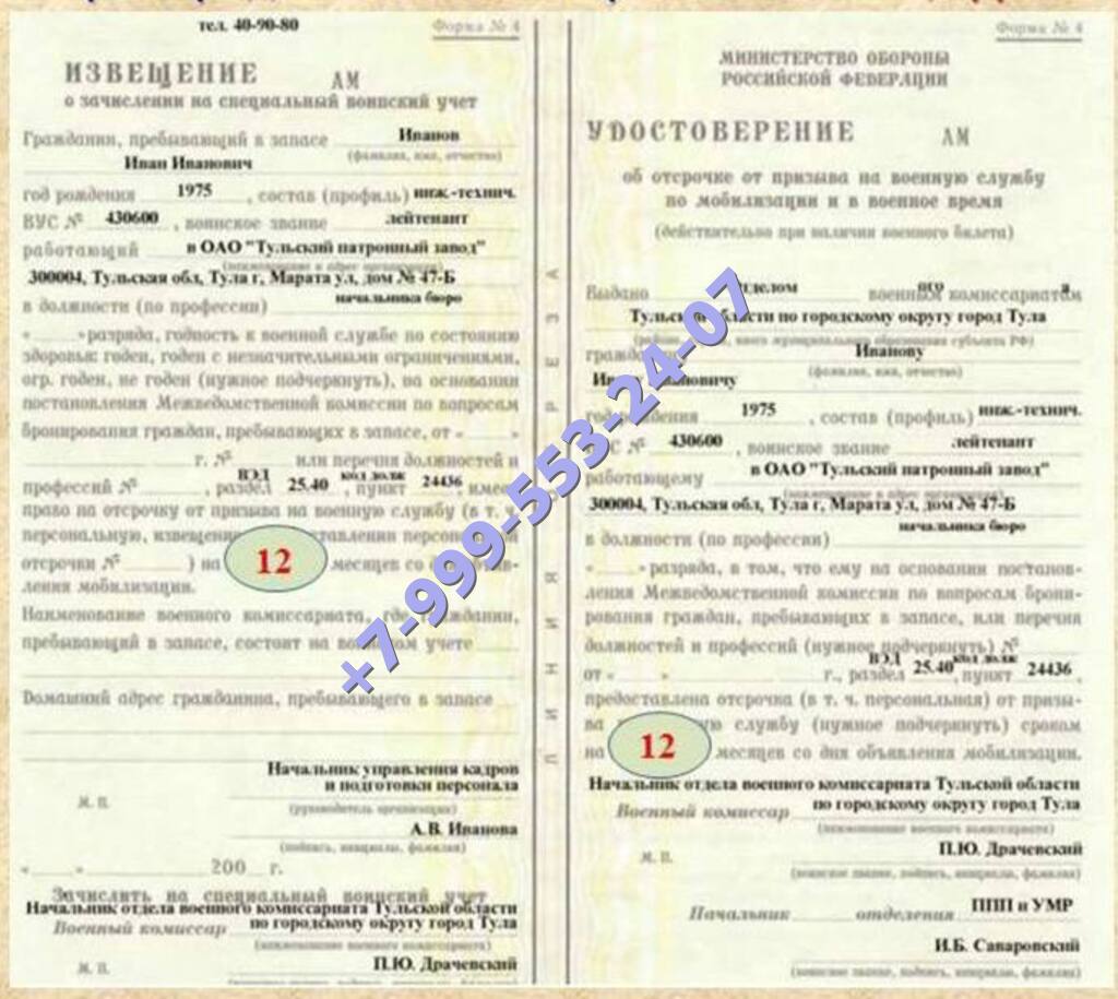 Наша компания предлагает купить в Гдове удостоверение об отсрочке на военную службу на максимально выгодных условиях для клиента. Документы легальные, использованы бланки государственного образца.